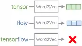 在Word2Vec中,需要为每个单词创建嵌入。因此,它不能处理任何在训练中没有遇到过的单词。例如,单词“tensor”和“flow”出现在Word2Vec的词汇表中。但是如果你试图嵌入复合单词“tensorflow”,你将会得到一个词汇表错误。