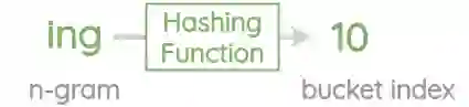 由于存在大量的唯一的n-grams,我们应用哈希来限制内存需求。我们不是学习每个唯一的n-grams的嵌入,而是学习一个总的B嵌入,其中B表示存储桶的大小。文章中用的桶的大小为200万。