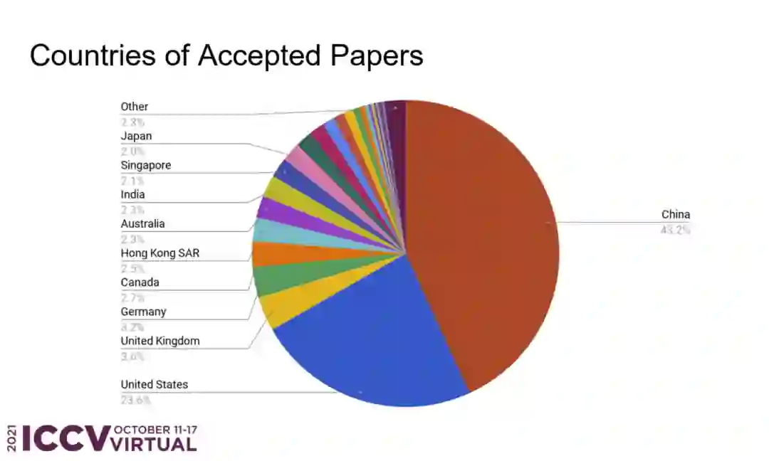 【导读】ICCV 2021最佳论文新鲜出炉!微软亚洲研究院团队拔得头筹,获得了最佳论文奖。还有最佳学生论文,最佳论文荣誉提名,PAMI-TC奖全公布。其中,中国学者数量几乎占据半壁江山,超过美国近一半。