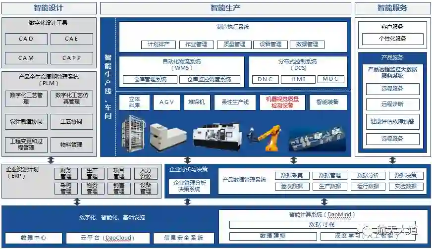 智能工厂通过物联网、务联网将工厂设施、设备、组织、人互通互联,集计算机、通讯系统、感知系统为一体,实现对物理世界“感”、“联”、“知”、“控”。无论是快速诊断残次的产生原因、对成品进行精确等级分类、快速改进生产流程或明确组织责任,都以追求提升客户满意度,实现更低成本、更高质量的产品和更优化的生产流程为最终目标。