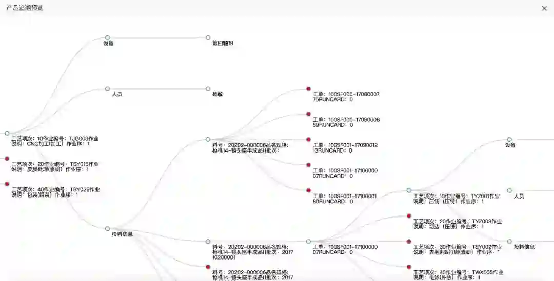 (通过思维导图的追溯查询可使企业某批次料号的整个生产加工过程被监控,可追踪。)