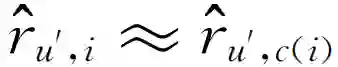 ,我们无法直接获得其分数,因为物品i对于所有用户来说都是新的,包括热启动用户和目标冷启动用户u'。我们可以通过一个类别级偏好来近似物品级偏好: