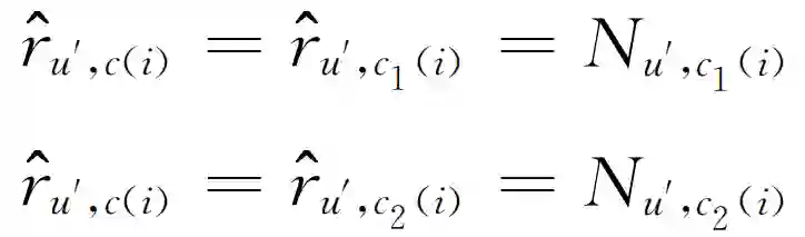 表示用户u的一组最近邻,用余弦相似度等进行度量。