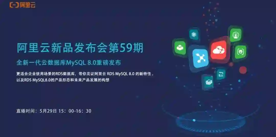为更强大而生!5月29日 15:00-16:00,诚邀您和我们一起见证阿里云RDS MySQL 8.0的新特性!