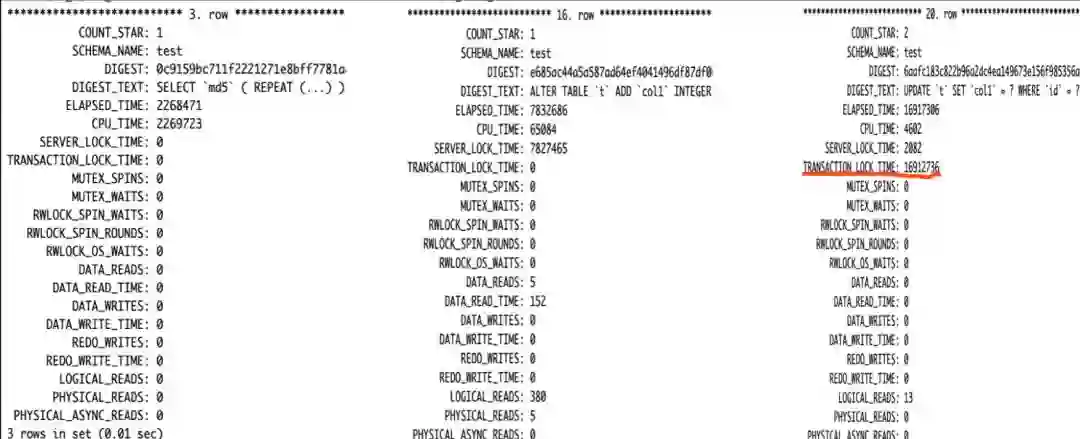2) LOCK: Server MDL lock time, Storage transaction lock time.