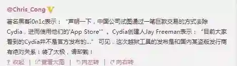 对于用户来说,这代表着更严重的问题,也就是你对越狱开发者是否信任的问题。我们都知道越狱是给手机获得最高权限的操作,这也恰恰就代表着越狱开发者们能在你的手机上做任何想做的事情,包括安装后门记录用户隐私等。当然事实证明他们没有这么做。