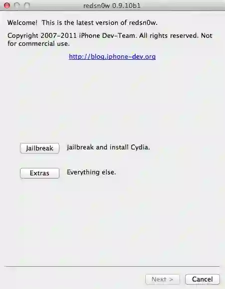 现在我们开始说了越狱,就不得不讲讲越狱界的一代传奇软件:redsn0w。对于经历过 iPhone OS 时代的人来说,这个软件他们肯定会有所耳闻。
