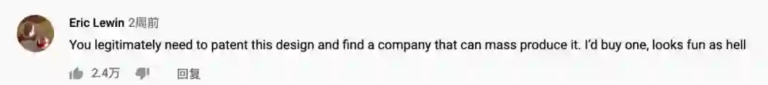 「你应该为这个设计申请专利,再找一家公司进行批量生产。我一定会买,太有意思了!」