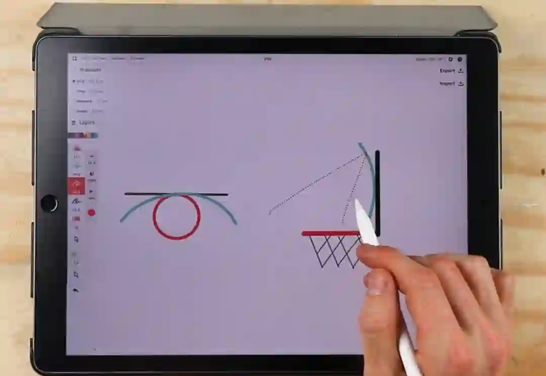 刚开始的想法非常简单,就是觉得要做一个「曲面」的篮板,让打在上面的球都能被弹到篮筐里,就像下边这张草图: