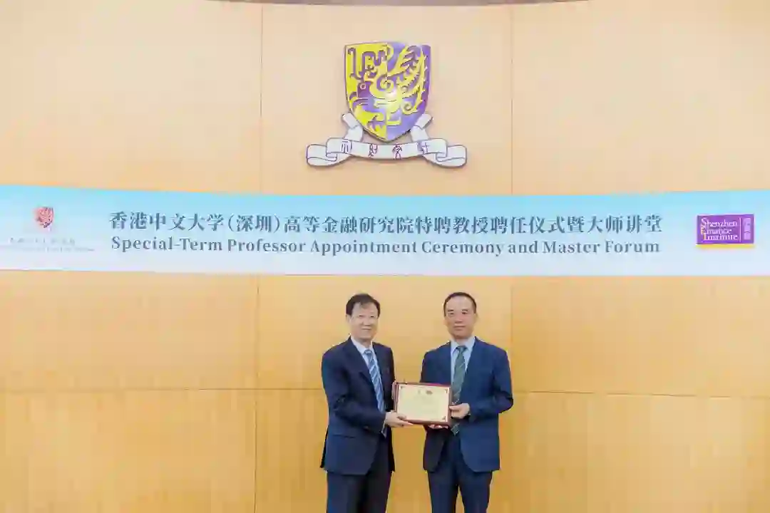 6月卸任的证监会原副主席姜洋接受深圳高等金融研究院的特聘教授聘任,9月4日,香港中文大学(深圳)校长徐扬生教授向姜洋博士颁发聘书。这也是深高金聘任的第八位特聘教授,在此之前,诺贝尔经济学奖得主Myron Samuel Scholes教授、银监会原主席刘明康教授、深圳市原副市长唐杰教授等已受聘为深高金特聘教授。