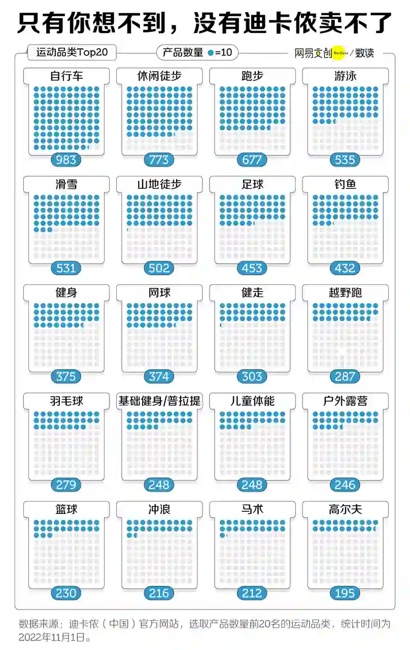 迪卡侬并没有止步于高性价比,它在价格低廉的同时还给了消费者近万种产品的选择。