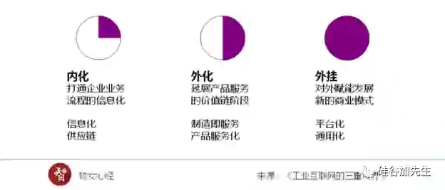 林雪萍在《工业互联网的三重境界》中写到,“从历史发展来看,工业利用IT技术,进行信息化和数字化的升级改造过程,大概可以分为三个阶段:打通企业业务流程的内化、实现制造服务一体化的外化阶段,以及为行业赋能的平台外挂阶段。”