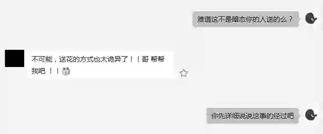 她说不是,送花的方式太诡异了,我让她加我微信详细说说这事的经过。