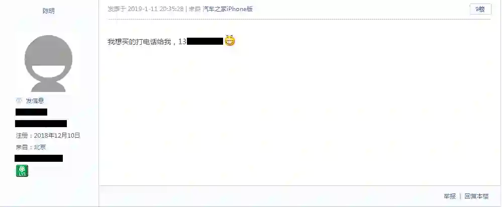 他在某个论坛回帖出现他的手机号,用户昵称叫陈明
