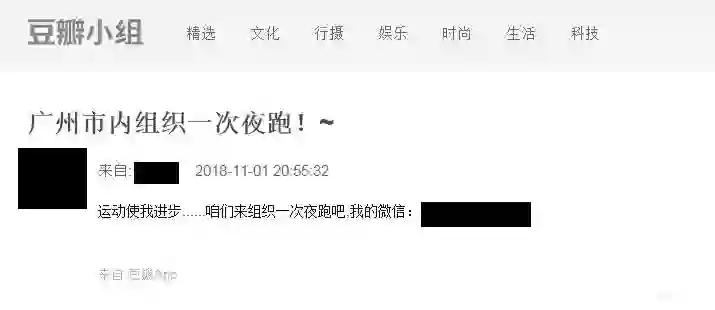 在网络上检索与这个微信有关的内容,很快就找到了一条豆瓣贴,组织广州市内的一次夜跑,而小菲恰恰是广州的,同样是喜欢运动,那她有参与吗?