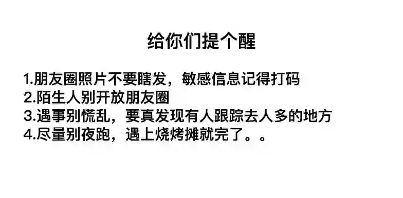 后来我跟小菲说这事的经过:“你是在去年那个夜跑活动被他盯上的,他应该是在群里加的你,看你朋友圈有自拍,长得挺好看的就通过你朋友圈泄漏的位置找到你家在哪,早段时间你收到的外卖就是他给你点的,后来他跟着外卖小哥上去才知道你住在哪个房间。”