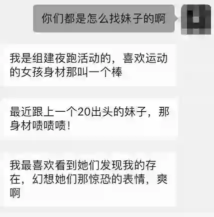 我怀疑陈杰是用同城夜跑活动去寻找猎物,当我以虚心请教的语气问你们平常都是怎么找猎物的,而陈杰告诉了我想要的答案。