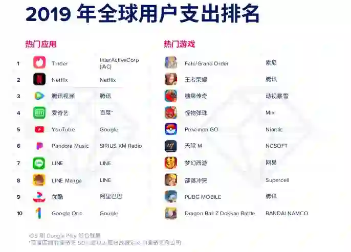 《王者荣耀》消费者支出排名全球第二,《PUBG MOBILE》也入围前十。