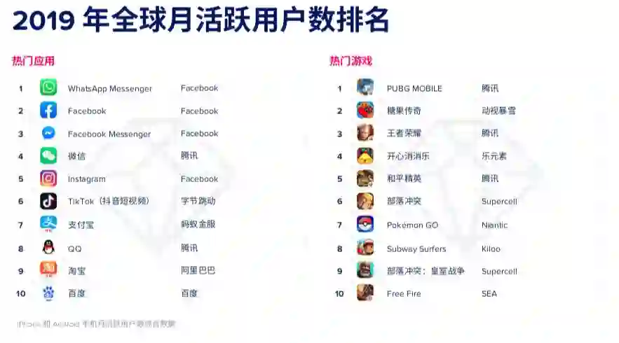2019年全球应用月活跃用户数榜单中,Tik Tok依旧表现不俗,排名第六,成为榜上次于微信的第二大中国应用。