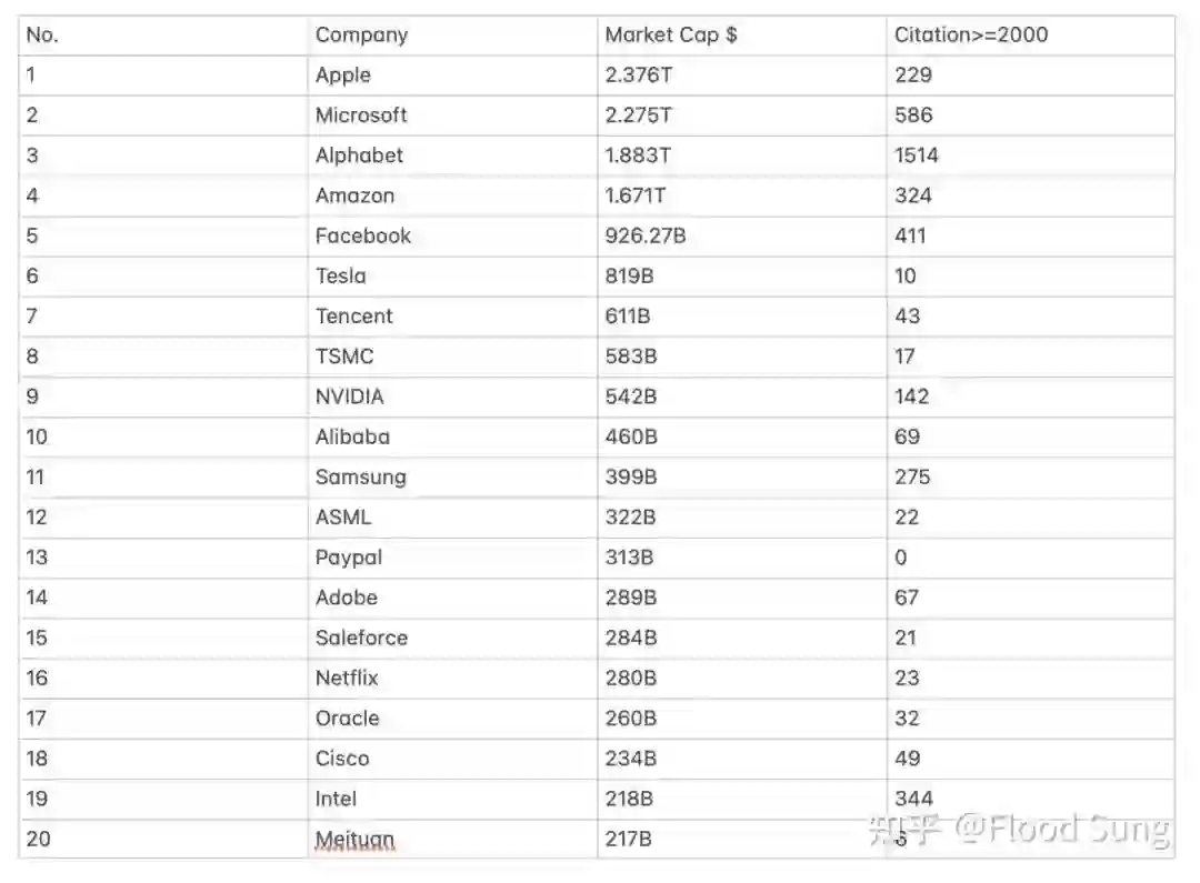 3. 没有强的科研能力的公司一定不会是最top的公司