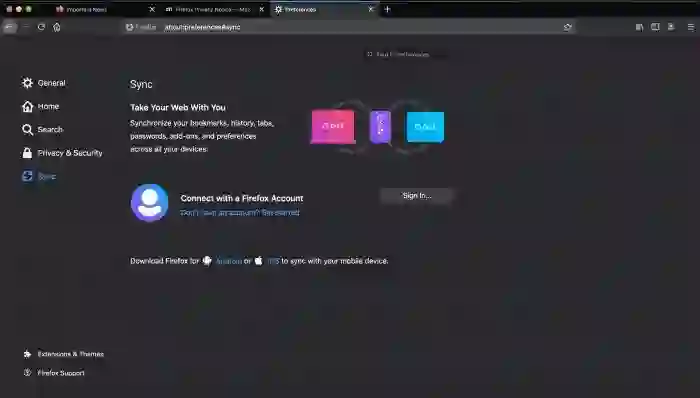 Firefox的自带页面(如“首选项”和新的“隐私保护”报告)现在遵循系统暗模式的设定而自动切换颜色,而macOS用户现在可以从Chrome浏览器导入密码。