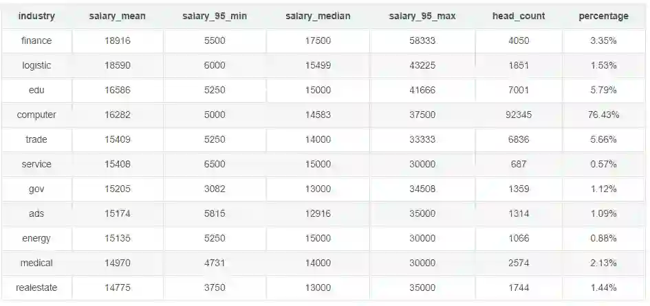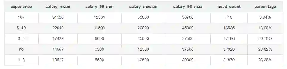 数据显示,工资会随着工作经验的增长而增长。不过,我感觉那些招十年工作经验的,基本上都是架构师等职位。如果你的工作经验是一年的工作经验重复十次,应该拿不到那么高的工资。这个以后我还会仔细分析。