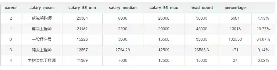和2019年相比,算法工程师的比例从8%,提高到了10%。