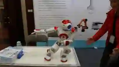 另一台则是大名鼎鼎的NAO机器人。NAO身上安装了两个摄像头,可以对周围物体进行识别跟随,用户也可以通过摸头和脚面对NAO进行相应的交流。目前NAO已被人大附中等校安排进入常规高中教育体系。展区里NAO还在现场热舞了一段江南Style。