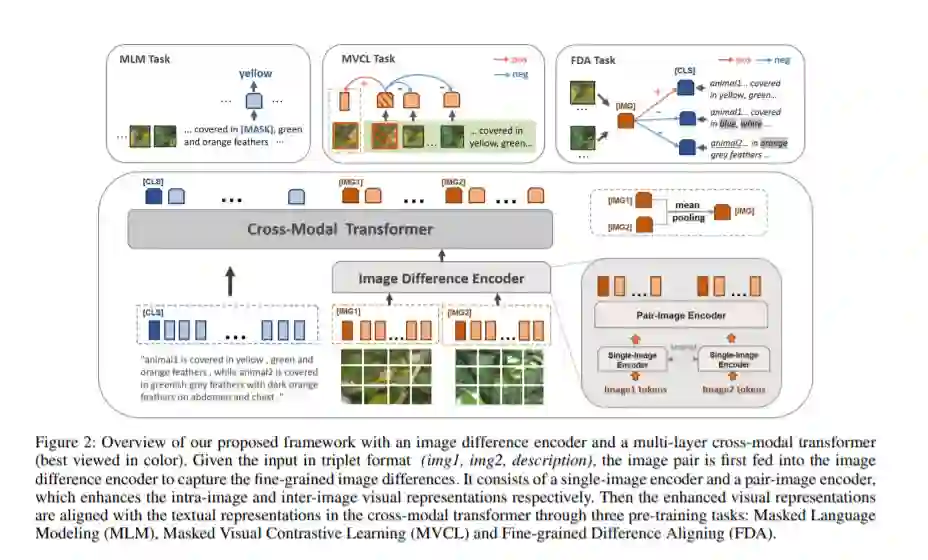 · 一方面,相似图片之间的差异是非常细粒度的,捕捉并描述出这种细粒度差异,需要建立(图片1,图片2,文本)三者之间更强的联系;