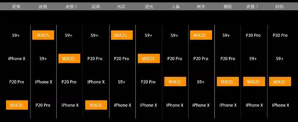 关于录像的总结比较直观,差距真的不大,过去三星和苹果的优势逐渐被拉近,连MIX 2S在多数场景都应对自如,可见国产机型进步之快。