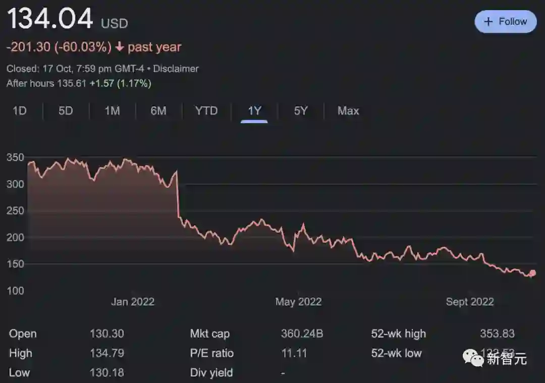 在过去的一年中,Meta的股价下跌了60%以上。