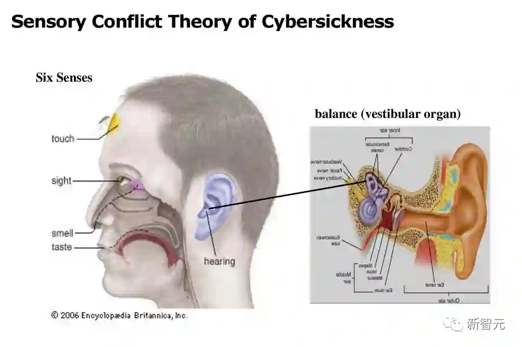 使用VR时,会产生一种运动视觉错觉。一种解释是:为了平衡,我们的眼睛和耳朵是相连的。