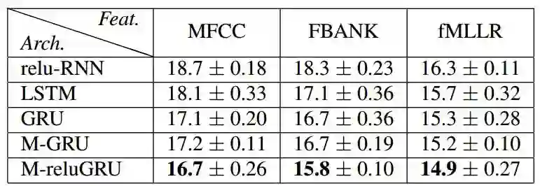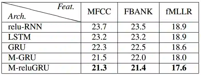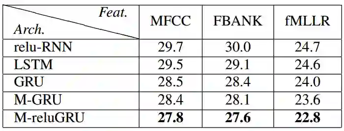 本论文立足于这些成果,通过进一步修改 GRU 提出了一种简化的架构,该架构可能更加适合语音识别。本研究有两大贡献。第一,我们提出移除 GRU 设计中的重置门,从而得到一种更高效的单门架构。第二,我们提出在状态更新过程中使用 ReLU 激活函数替代 tanh。结果表明,在我们的实现中,比起标准的 GRU,这种修改后的架构可以将每 epoch 的训练时钟时间减少 30% 以上,同时还能在多种不同的任务、输入特征和噪声条件上都实现识别表现的提升。