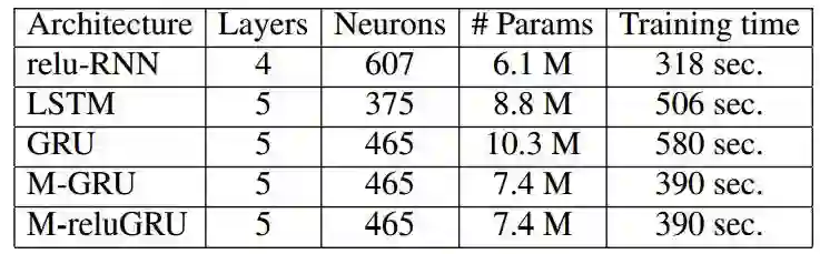 第二,我们提出在状态更新过程中使用修正线性单元(ReLU)激活函数替代双曲正切(tanh)。在过去,由于 ReLU 激活函数的无界性所引起的数值不稳定性,我们会在 RNN 上避开这样的非线性。但是,当我们将基于 ReLU 的 GRU 架构与批规范化(batch normalization)[4] 结合到一起时,我们没有遇到这样的数值问题。这让我们可以使用 ReLU 神经元了,这种神经元已经在进一步缓解梯度消失问题以及加速网络训练上得到了有效的证明。