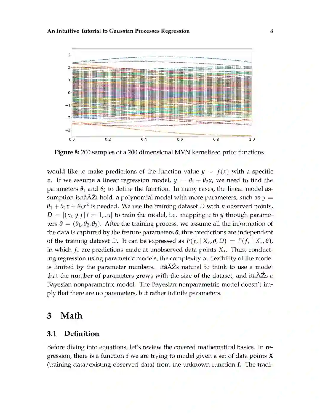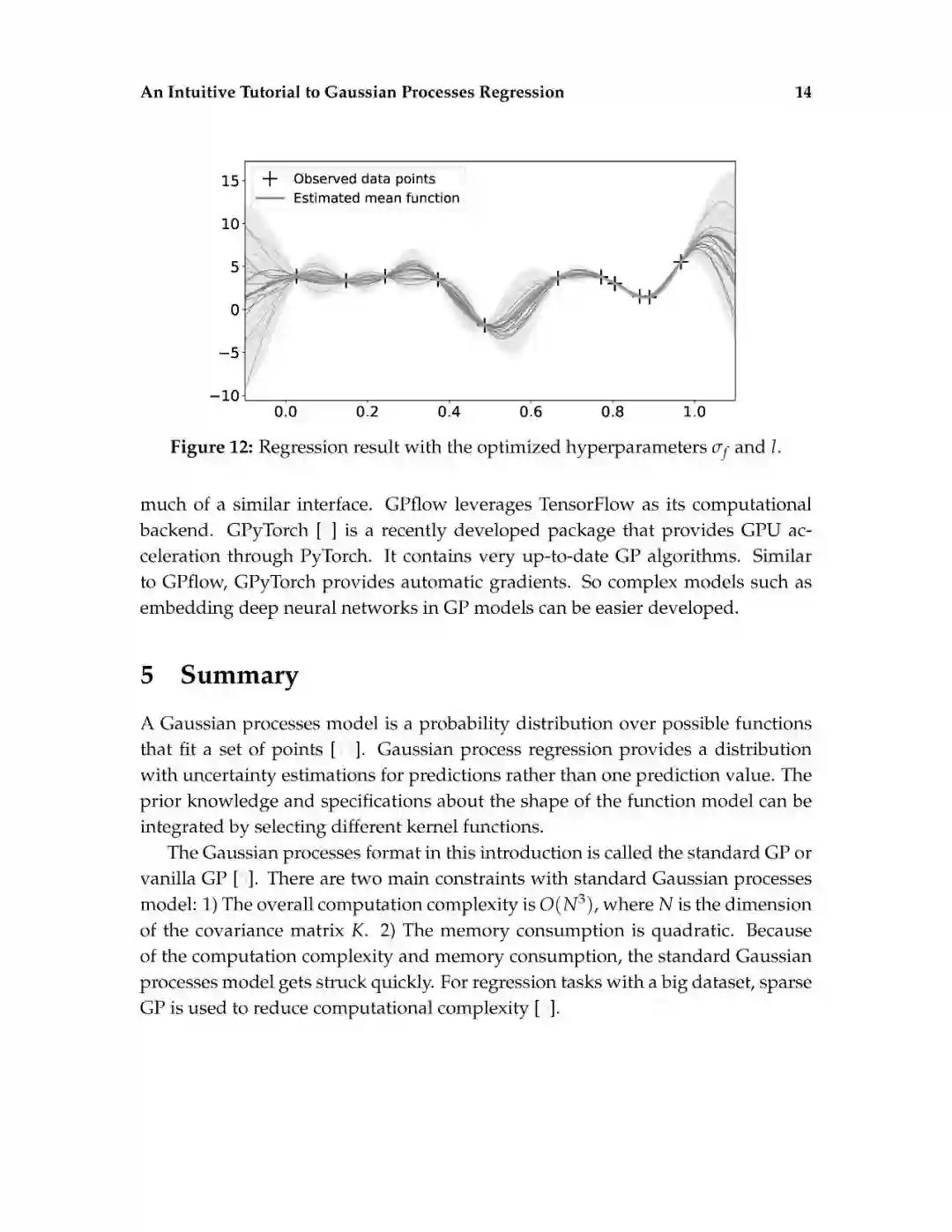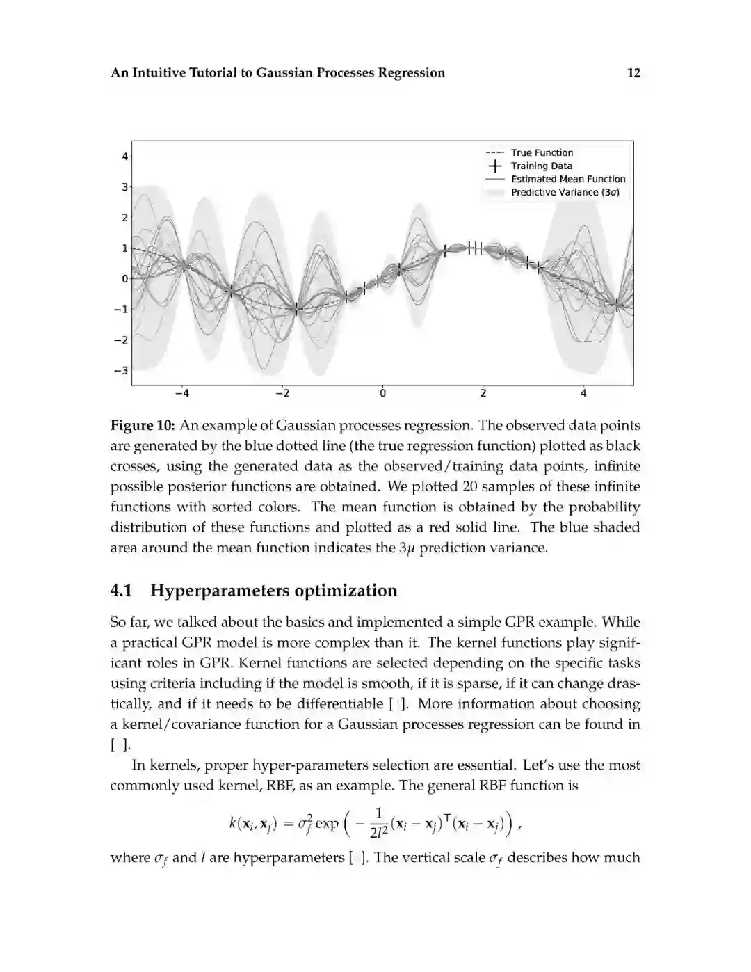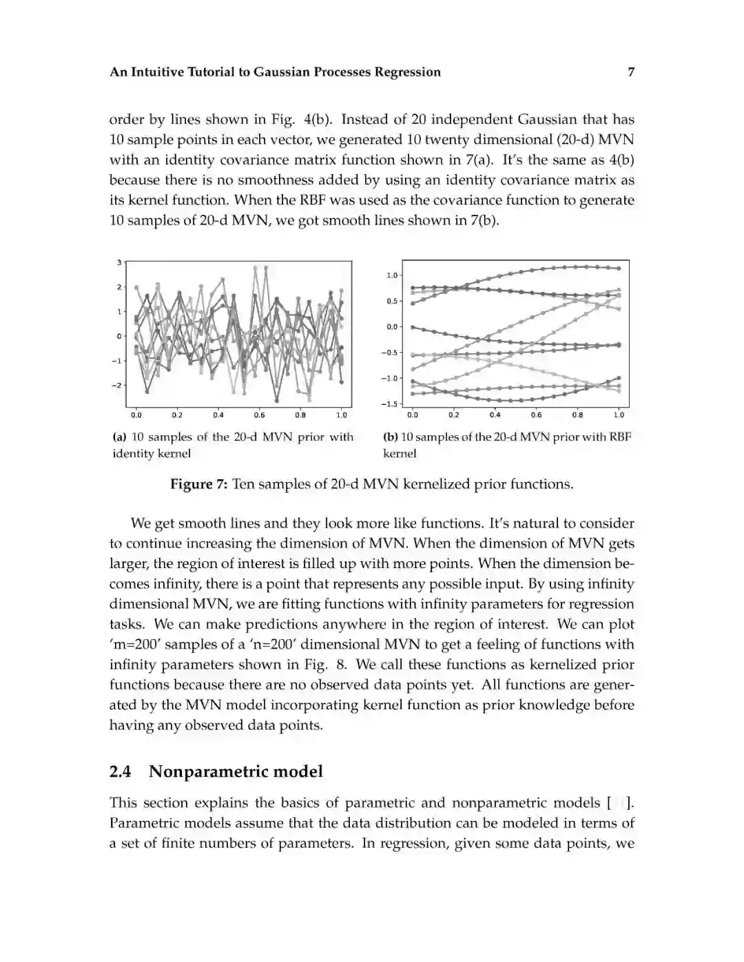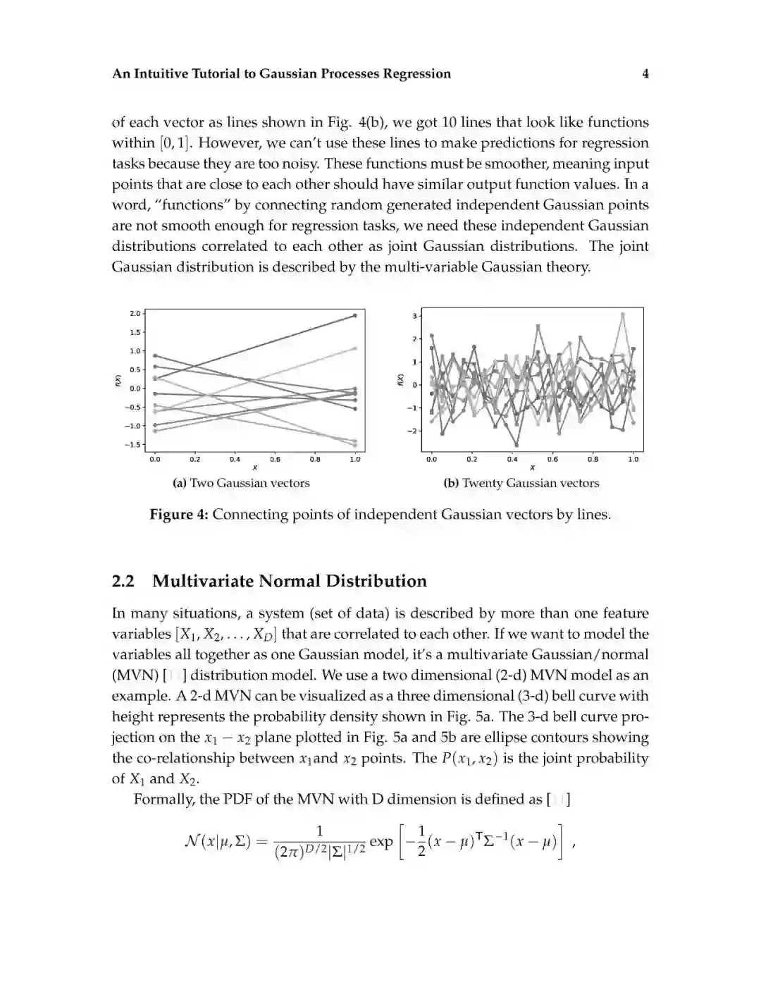 这篇介绍旨在为读者提供对高斯过程回归的直观理解。高斯过程回归(GPR)模型由于其表示法的灵活性和预测的固有不确定性,在机器学习应用中得到了广泛的应用。本文首先解释了高斯过程所建立的数学基础,包括多元正态分布、核、非参数模型、联合概率和条件概率。然后,通过显示不必要的数学推导步骤和缺少关键的结论性结果的平衡,以可访问的方式描述高斯过程回归。给出了一个标准高斯过程回归算法的说明性实现。除了标准的高斯过程回归之外,现有的软件包实现了最先进的高斯过程算法。最后,给出了更高级的高斯过程回归模型。这篇论文的写作方式通俗易懂,理工科本科学生理解文章内容不会有困难。