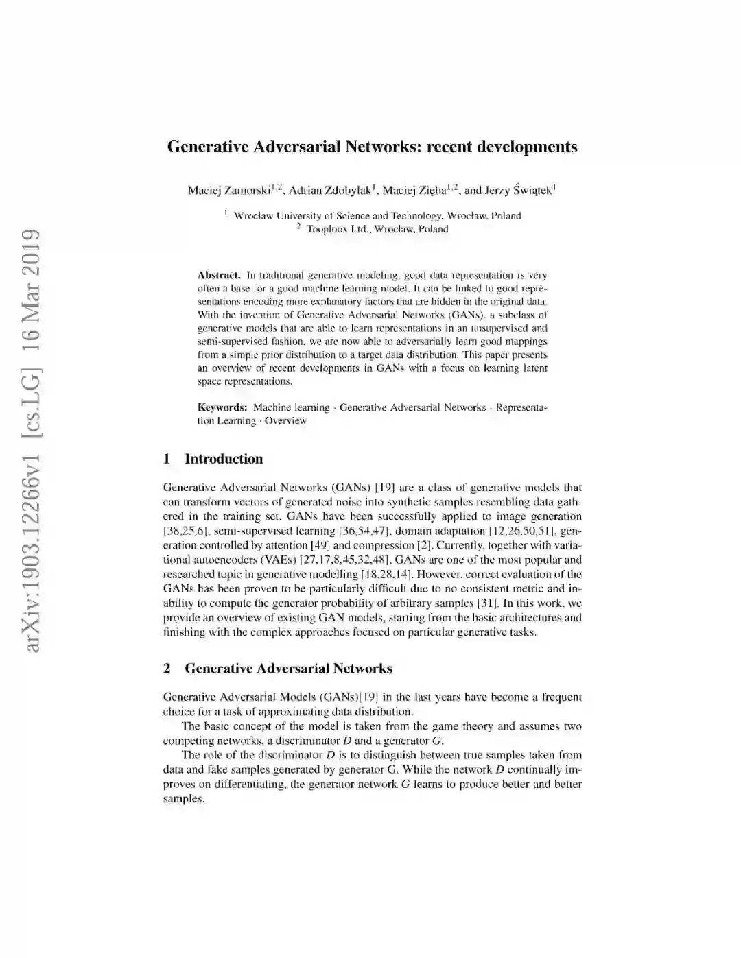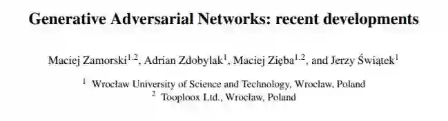 【导读】生成式对抗网络模型(GAN)是基于深度学习的一种强大的生成模型,可以应用于计算机视觉、自然语言处理、半监督学习等重要领域。最近来自Maciej Zamorski等学者简述了关于GAN的进展论文,值得一看。
