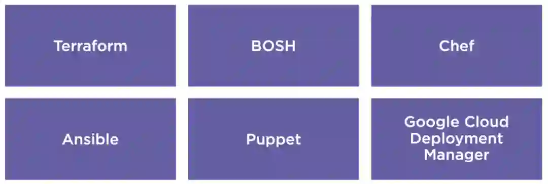 配置管理工具的作用是将基础架构代码化,加强一致性。目前业内常用的配置管理工具包括 Terraform、BOSH、Chef、Ansible、Puppet、Google Cloud Deployment Manager。