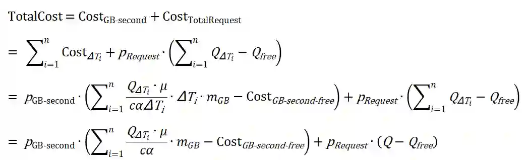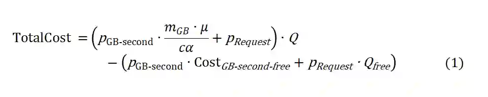 为方便计算 TotalCost,用表示函数的资源规格,单位为 GB, 例如,对于 128MB 规格的函数,其
