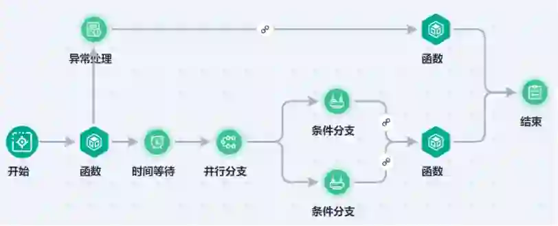 若应用函数的确需要提供多个功能,可以考虑将大函数分解为多个小函数,然后通过函数编排的方式实现整体逻辑, 如图 5 所示的 FunctionGraph 函数流功能。大函数分解也是 Serverless 计算中用户处理超时(timeout)等异常场景的最佳实践之一[4]。
