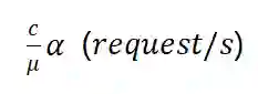 ; c 表示该函数的单实例并发数,μ 表示函数的平均执行时延,单位为毫秒 ; 并用 α (0<α<1) 表示 Serverless 平台的调用链路性能,在最理想的情况下,该指标为 1,表示在当前 Serverless 平台上,该函数响应单个请求的端到端时延等于函数执行时延 μ 本身,不同 Serverless 平台的 α 值可能略有不同,但通常在 0.9 以上。给定上述指标,可以得到单实例在理想状况下的请求处理能力, 即理论上每秒可以响应的调用次数为: