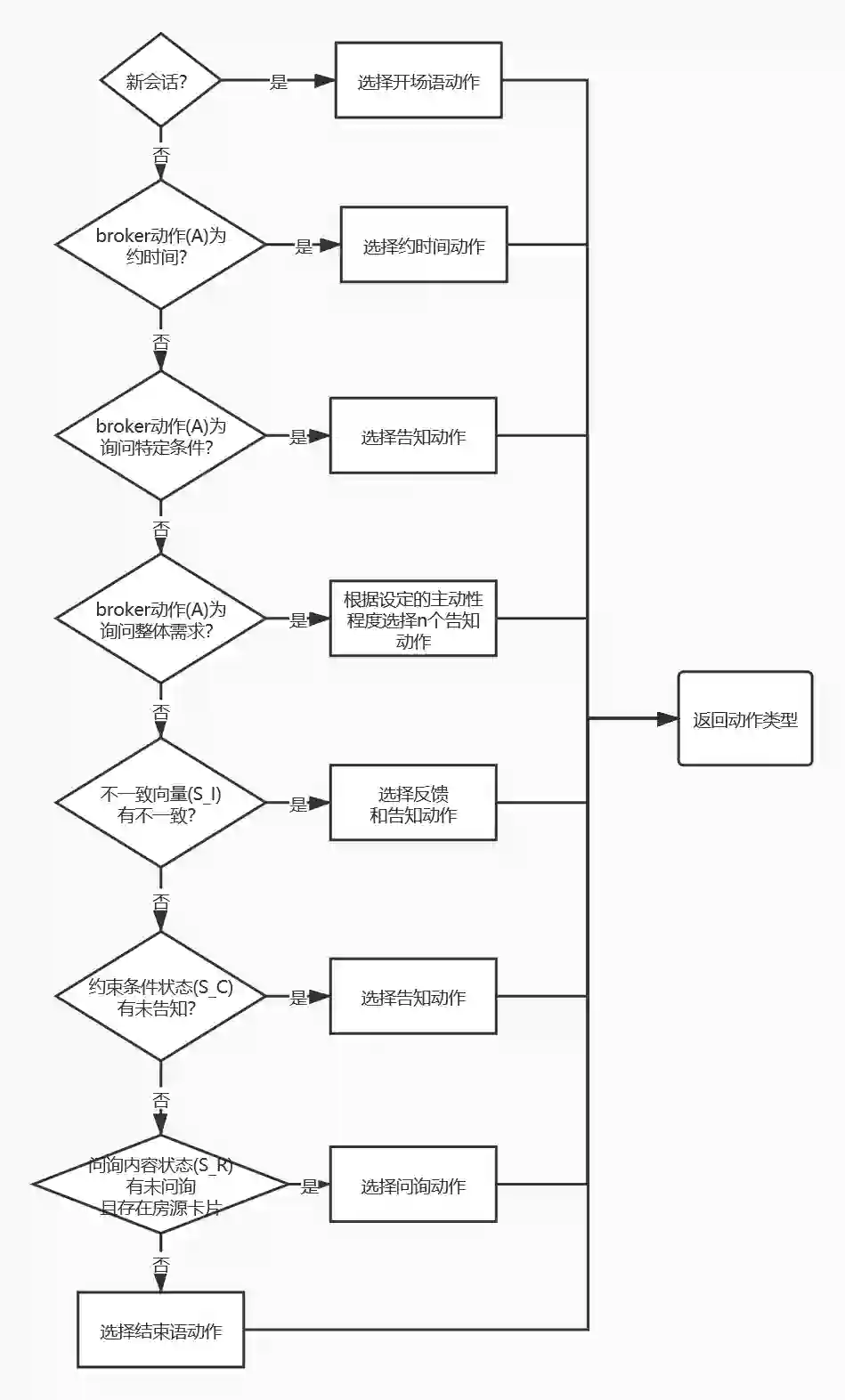 每一轮会话,模型会根据更新后的状态进行动作采样,根据经验,我们设定状态优先级顺序为:A>S_I>S_C>S_R。