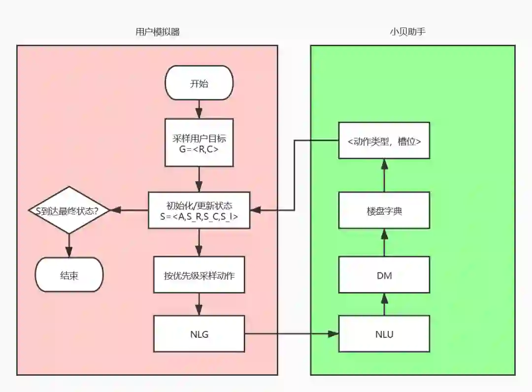 小贝助手的动作类型有多种,比如回答详情、推荐房源、询问需求、约带看等,每次修改动作策略之后都需要进行测试,以评估时机或者答案的准确性,这时如果引入模拟用户进行仿真测试,将会非常高效和可信。