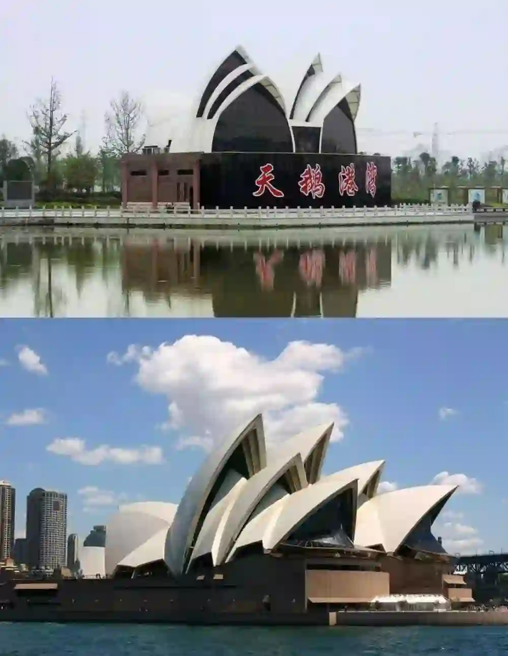 江苏某县歌剧院(上)与悉尼歌剧院(下)