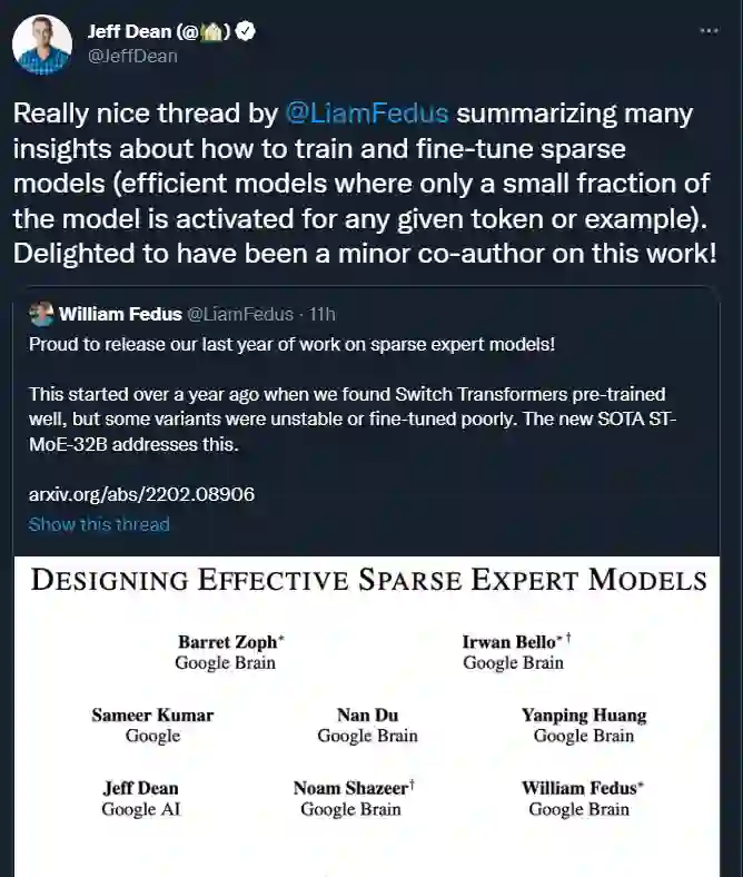 稀疏模型在深度学习领域发挥着越来越重要的作用。对于给定的 token 或样本,它可以只激活模型的一小部分,从而在拥有很大的参数量的同时也能做到计算友好。但是,如何可靠地训练这类模型依然是一个需要解决的问题。在这篇文章中,来自谷歌的 Barret Zoph、Irwan Bello、William Fedus 、Jeff Dean 等研究者给出了一份「高效稀疏专家模型设计指南」。