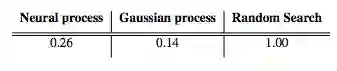 优化步骤的平均数需要达到高斯过程生成的1-D函数的全局最小值。这些值是通过随机搜索采取步骤数来标准化的。使用恰当的核(kernel)的高斯过程的性能等同于性能的上限。