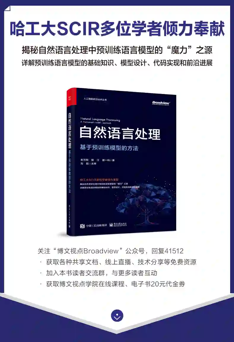 近些年来,以GPT、BERT为代表的预训练模型在自然语言处理领域掀起了一股浪潮,打开了“预训练+精调”的自然语言处理新范式的大门。由电子工业出版社博文视点出版的《自然语言处理:基于预训练模型的方法》一书,通过基础知识、预训练词向量以及预训练模型三大部分九个章节,详细介绍了预训练模型发展的来龙去脉,并通过示例代码进一步加深了读者对相关技术的理解与实践方式。