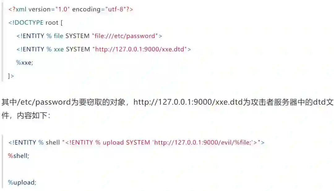 通过xml+dtd文件,攻击者便可以在服务器http://127.0.0.1:9000中收到如下请求: