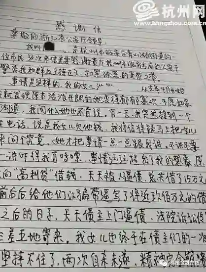 一位母亲写给浙江省公安厅的感谢信引起各方的注意。