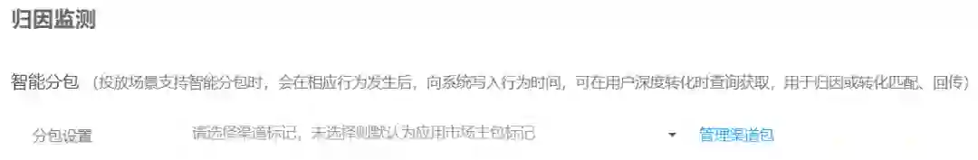 物理分包,比如APP广告主在不同的渠道投放带有不同标记的包体,当用户下载并打开该APP时,广告主通过读取封印在包体里的信息就能去识别到这个用户是从哪个渠道下载的了。不过这种方案比较麻烦,广告主需要去管理不同的安装包。而另一种智能分包就比较友好了,笔者了解到在华为应用市场上使用智能分包归因,广告主只需管理一个安装包,并在不同推广任务中绑定提前在投放平台创建好的虚拟分包渠道号,就能清楚得知每个用户都是来自于哪些不同条件的推广任务了。