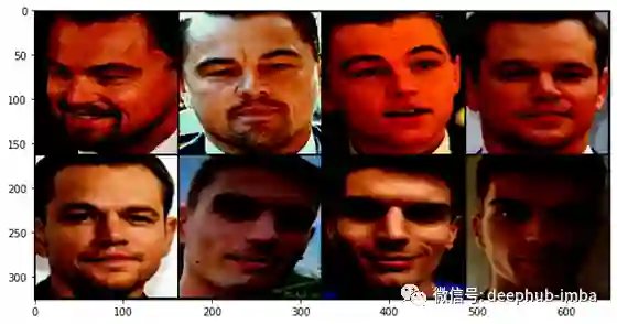 数据集返回张量。让我们可视化所有输入。它们已通过MTCNN图像进行了归一化,最后一行的最后三张图像是作者自己的自拍照:)